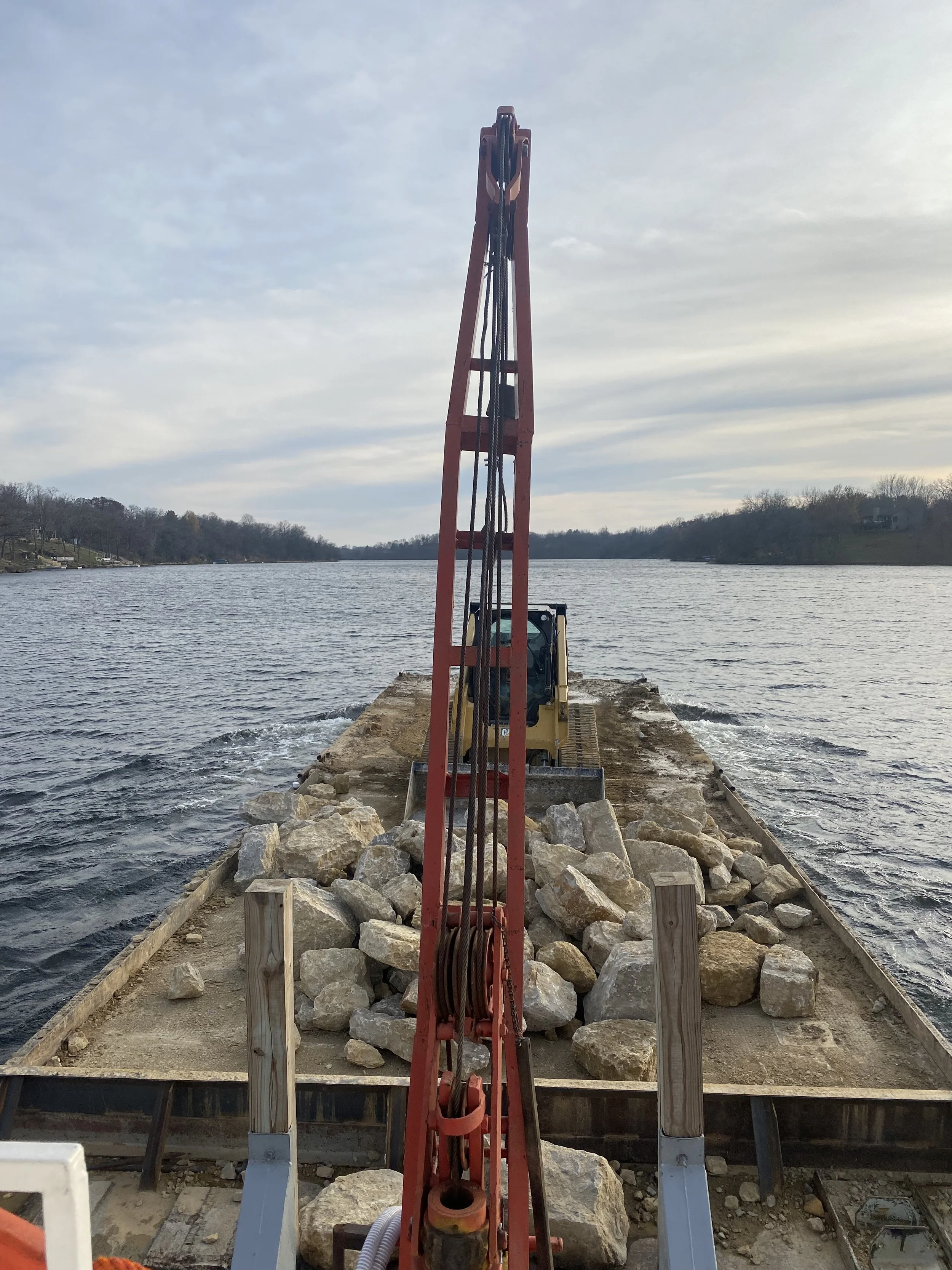 Heavy duty protection of your banks from erosion with permanent riprap. We have the tools to do it right.